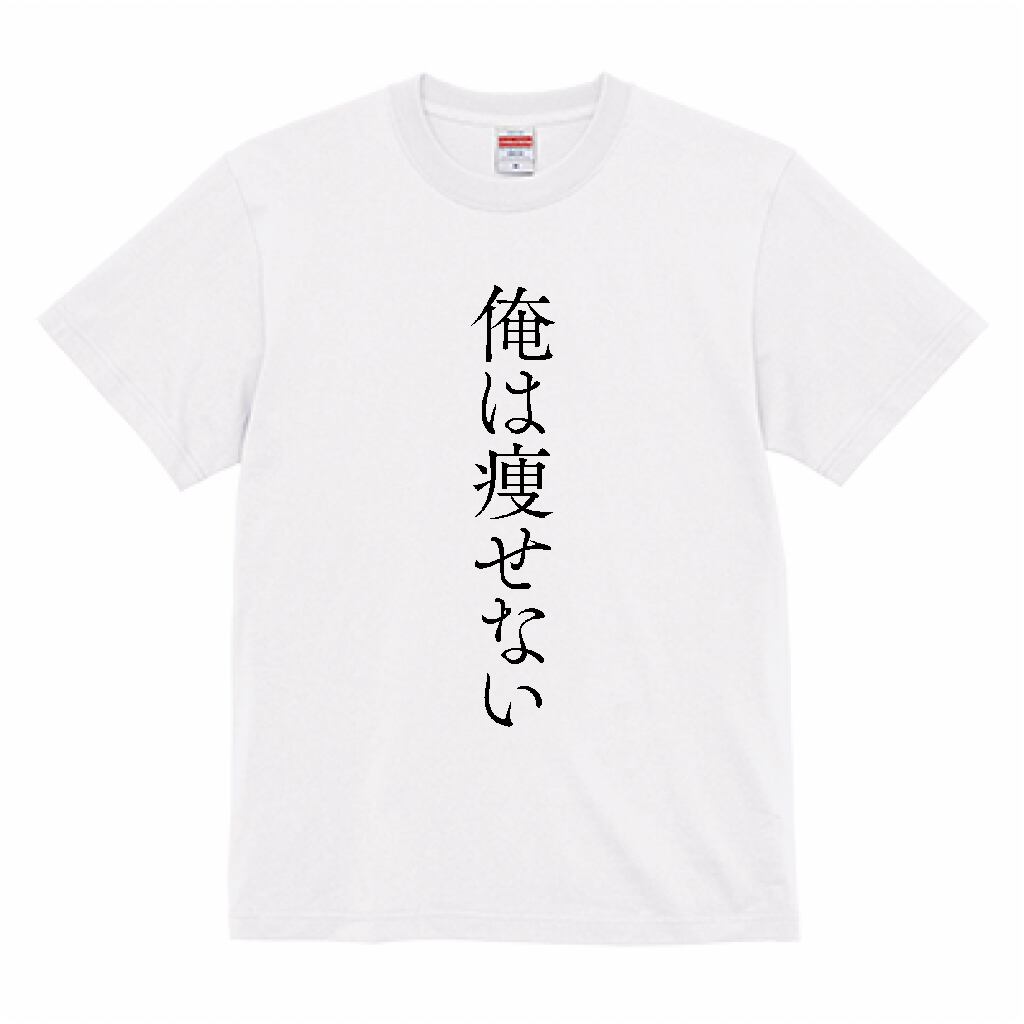 「俺は痩せない」(筑紫Cオールド明朝 R)文字Tシャツ おもしろ ネタデザイン 半袖 メンズ 言葉 ★Tシャツカラー:ホワイト★【受注生産・メーカー直送品】