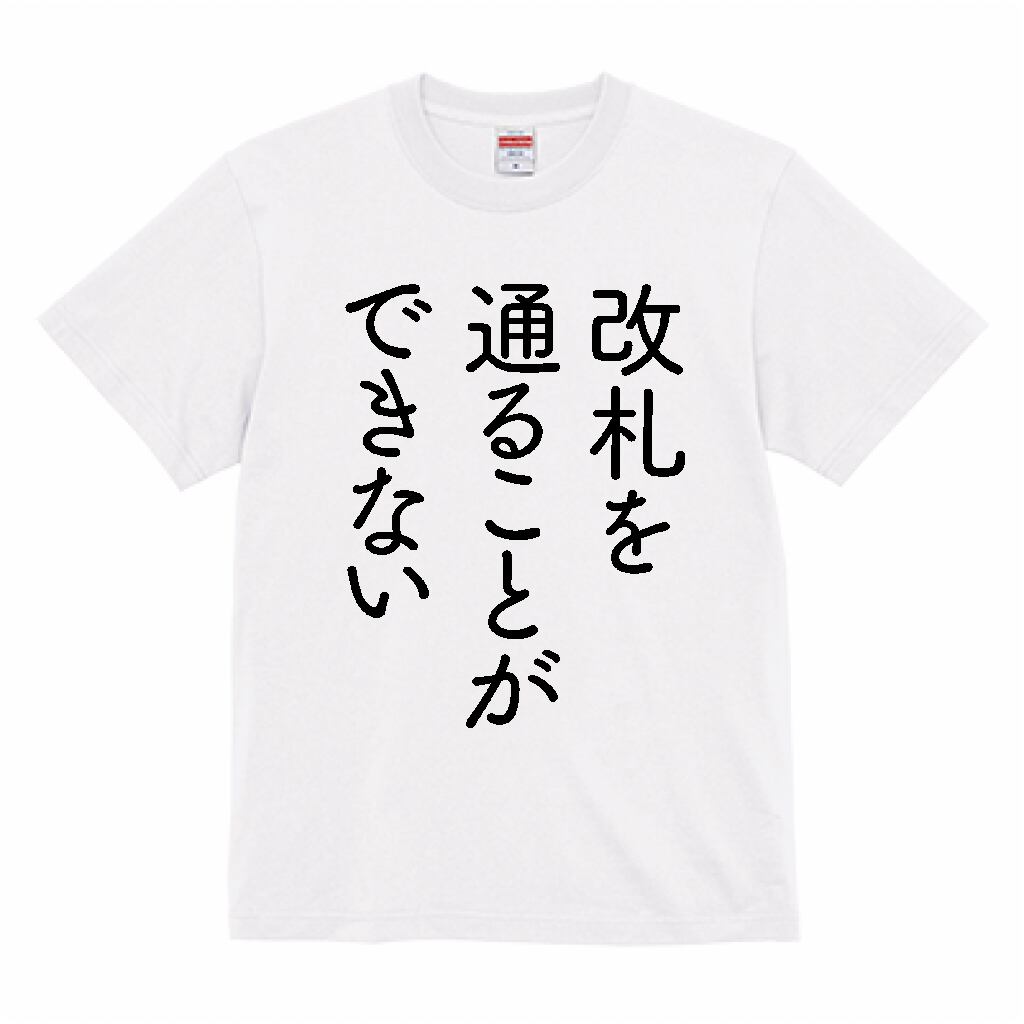 「改札を通ることができない」(筑紫B丸ゴシック D)文字Tシャツ おもしろ ネタデザイン 半袖 メンズ 言葉 ★Tシャツカラー:ホワイト★【受注生産・メーカー直送品】