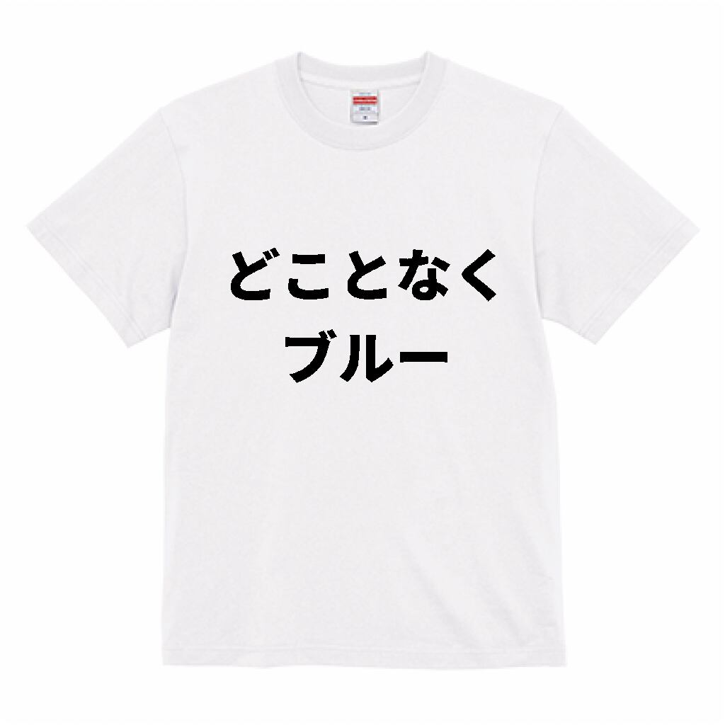 「どことなくブルー」(源ノ角ゴシックH)文字Tシャツ おもしろ ネタデザイン 半袖 メンズ 言葉 ★Tシャツカラー:ホワイト★【受注生産・メーカー直送品】