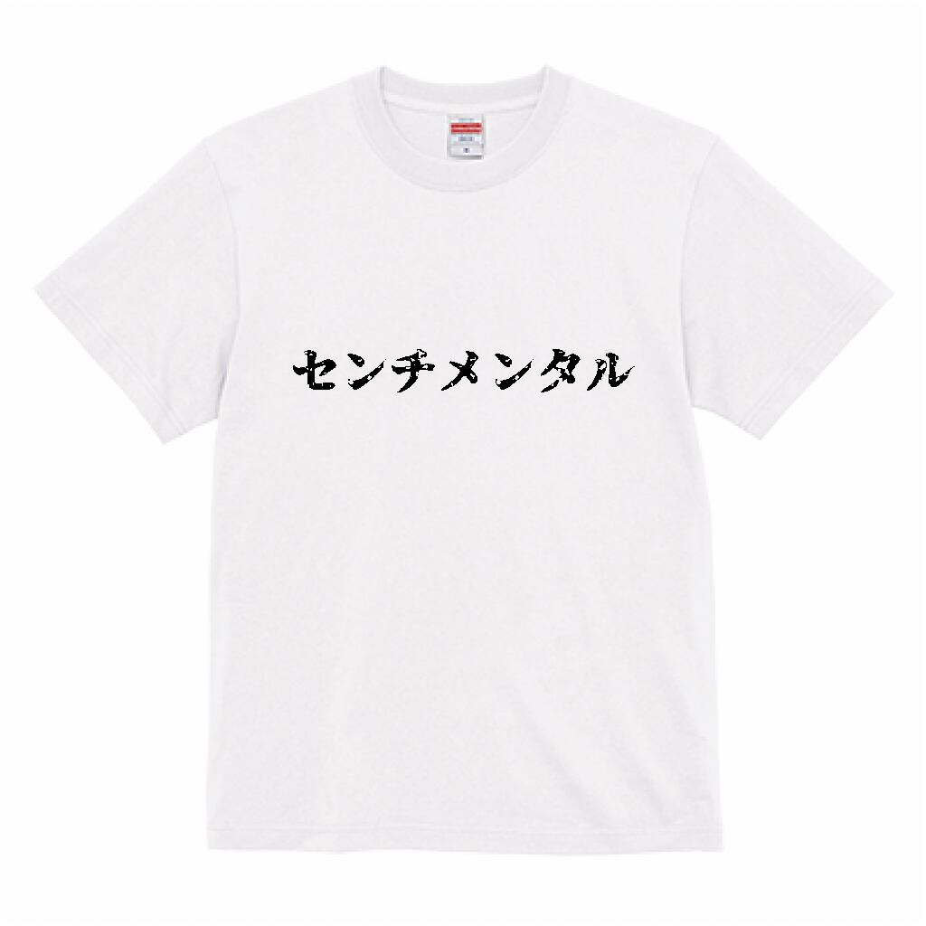 「センチメンタル」(源界明朝)文字Tシャツ おもしろ ネタデザイン 半袖 メンズ 言葉 ★Tシャツカラー:ホワイト★【受注生産・メーカー直送品】