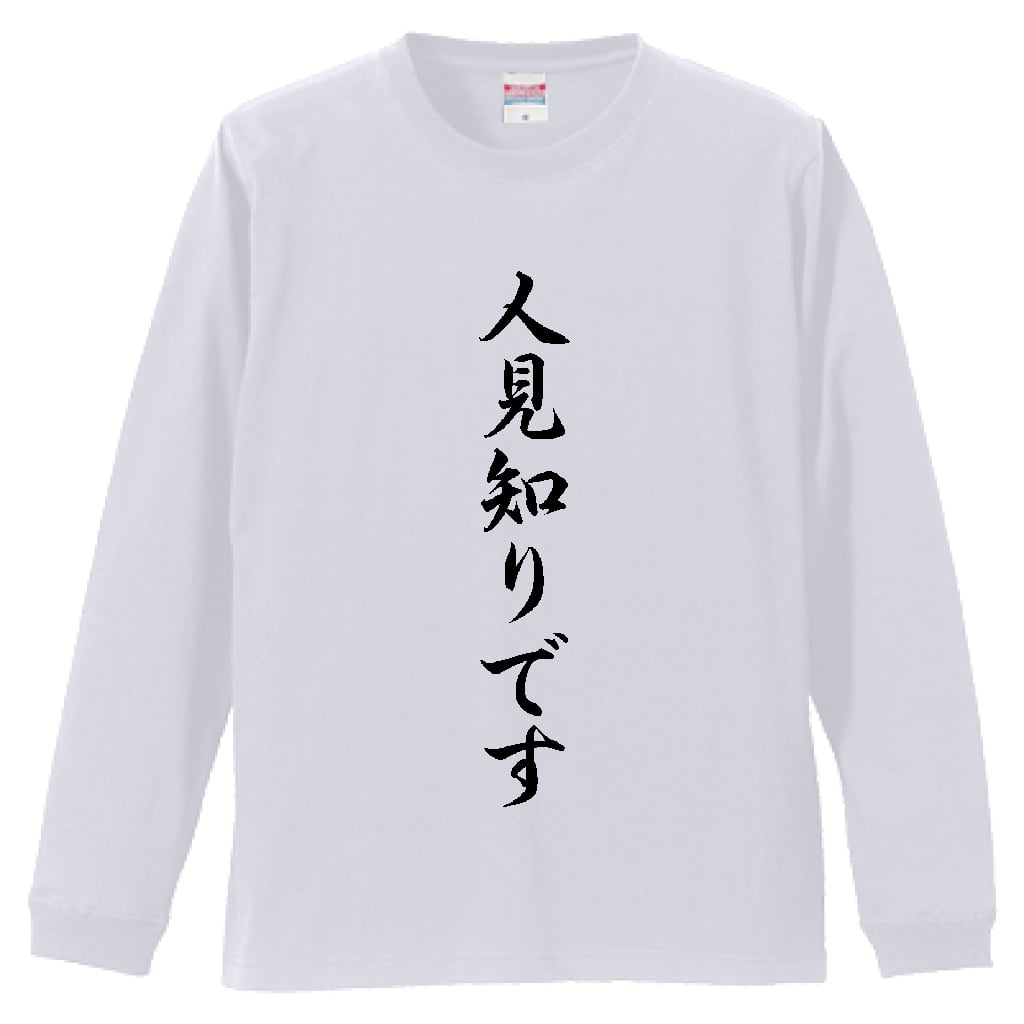 「人見知りです」(ヒラギノ行書体 Stdn W8)文字Tシャツ おもしろ ネタデザイン 長袖 メンズ 言葉 ★Tシャツカラー:ホワイト★【受注生産・メーカー直送品】