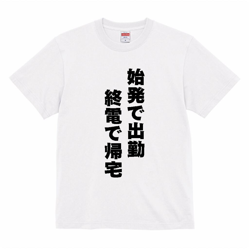 「始発で出勤 終電で帰宅」(セザンヌ Pro EB)文字Tシャツ おもしろ ネタデザイン 半袖 メンズ 言葉 ★Tシャツカラー:ホワイト★【受注生産・メーカー直送品】
